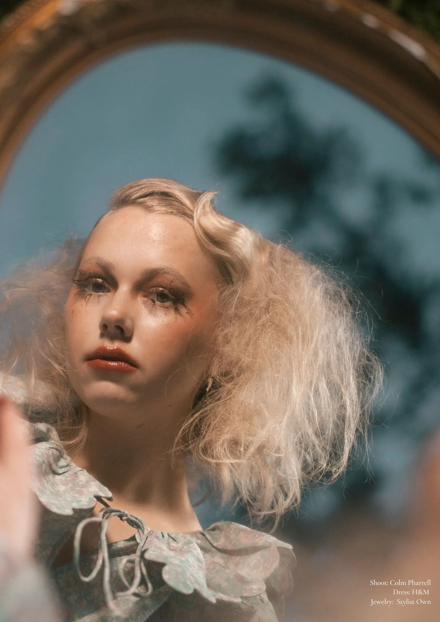 Tears become morning dew. Renewed by the sense of traveling and experiencing the arrival of the sun each dawn. This photo shoot was inspired by Barbara and Michael Leisgen and the mimetic of the landscape. In these photos, we added a twist as mimicked different aspects of nature and focused on the whimsicality of the clothing. Romanticizing the love with nature and its surroundings yet still keeping it resilient and calm. When the reader looks at these pictures, we want them to imagine receiving a breeze signifying freshness and new beginnings